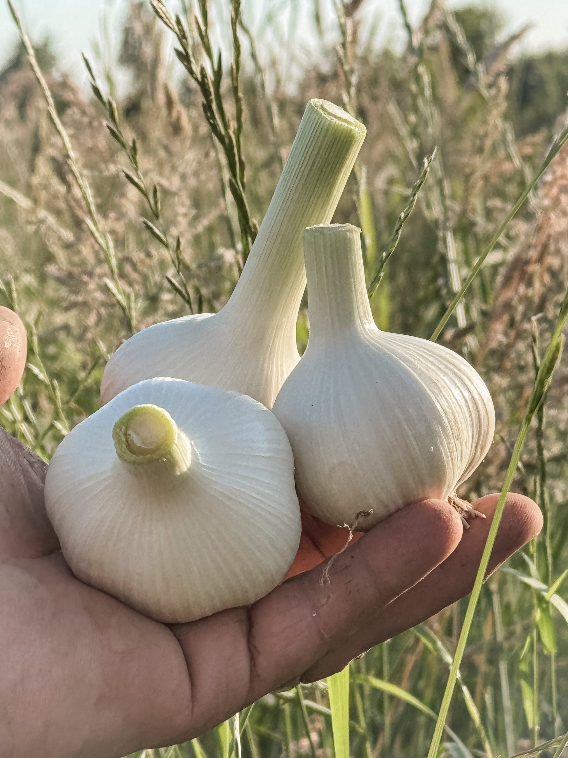The friendly giant of garlics! These beautiful white bulbs offer a surprisingly mild, sweet flavor without the usual garlic punch. Easy-to-peel cloves make prep a breeze, while high Allicin content keeps health benefits maxed. Thrives in humid spots and handles both hot and cold weather like a champ. Perfect for raw dishes when you want a subtle garlic taste.